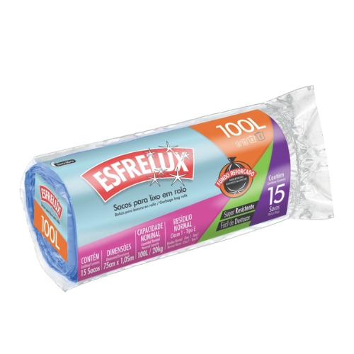 Saco de Lixo Esfrelux Azul 100l Rolo com 15 Und