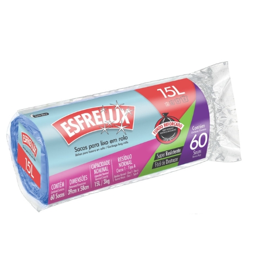 Saco de Lixo Esfrelux Azul 15l Rolo com 60Und